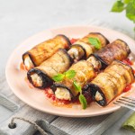 Auberginenröllchen aus dem Ofen mit cremiger Käsefüllung