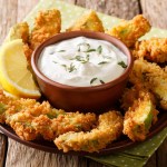 Frittierte Avocado-Sticks mit Curry-Dip