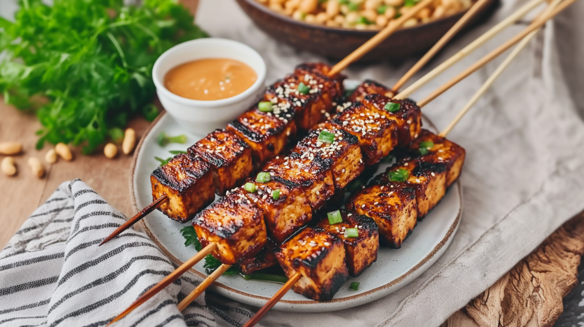 Tofu-Satéspieße mit Erdnusssoße
