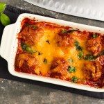 Überbackene Hackbällchen in Tomatensoße
